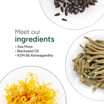 - A potent fusion of Sea Moss, KSM-66 Ashwagandha, and Black Seed Oil.